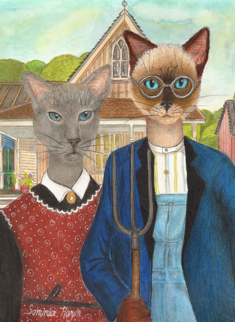 Cats are my favorite subject to create art. They have so many expressions, and I love to create them with human characteristics.